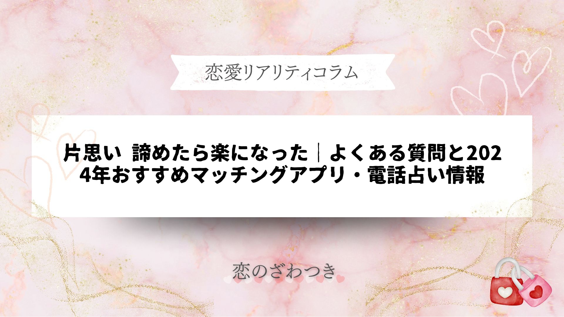 「片思い 諦めたら楽になった」後の新しい一歩を後押ししてもらえるでしょう。