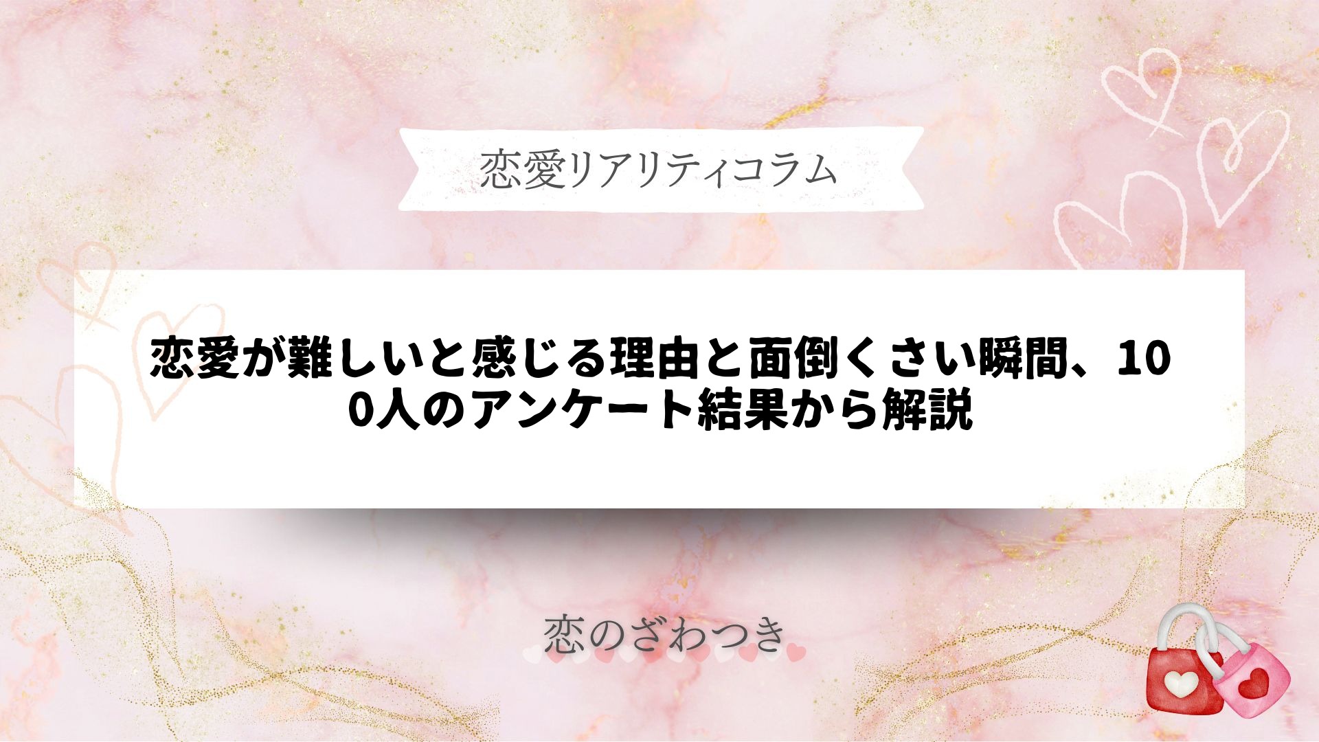 このアンケート結果からも分かるように、恋愛が難しいと感じるのはごく自然なこと。