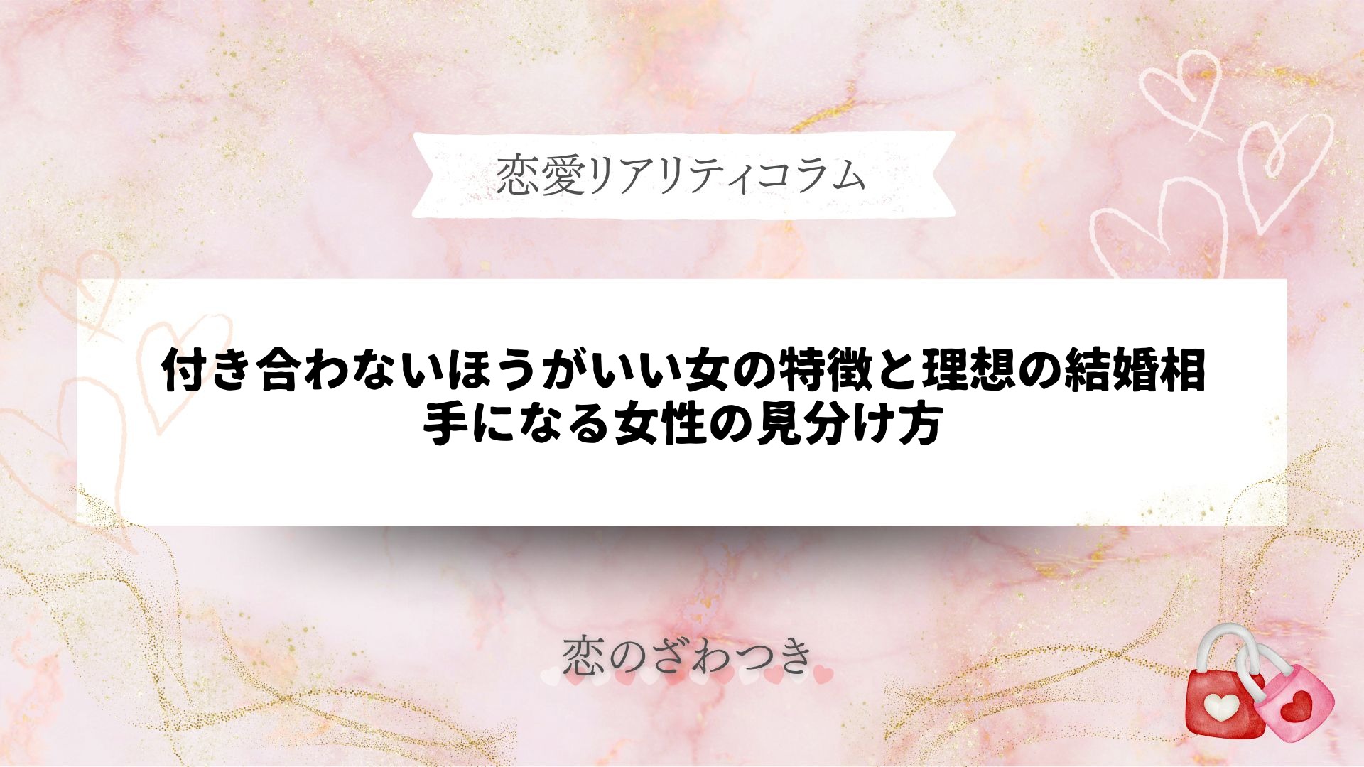 本記事では、「付き合わないほうがいい女」の特徴や、理想のパートナー選びのポイントについて解説しました。