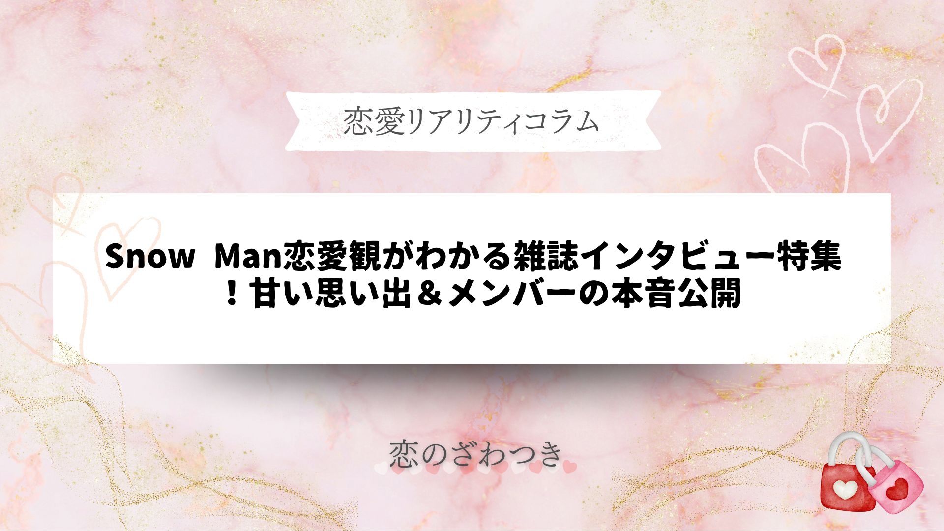 本記事では、「snowman 恋愛観 雑誌」をテーマに、Snow Manメンバーそれぞれの恋愛観や甘い思い出、雑誌インタビューで語られたリアルな本音を詳しくご紹介しました。