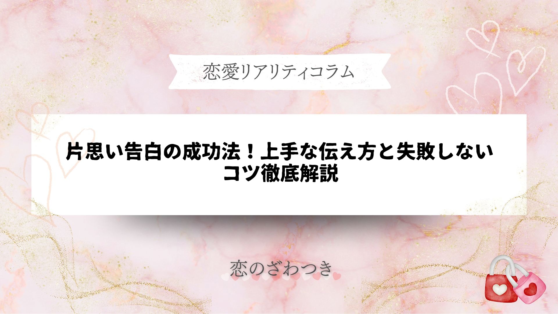 | 片思い 告白 | 好きな人に自分の気持ちを伝えること。タイミングや方法を工夫することで成功率がアップする。 |