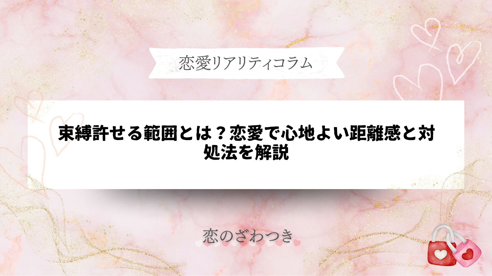 「束縛許せる範囲」をはじめ、恋愛でよくある悩みや疑問に寄り添い、皆さまの幸せな恋愛をサポートする情報を提供しています。