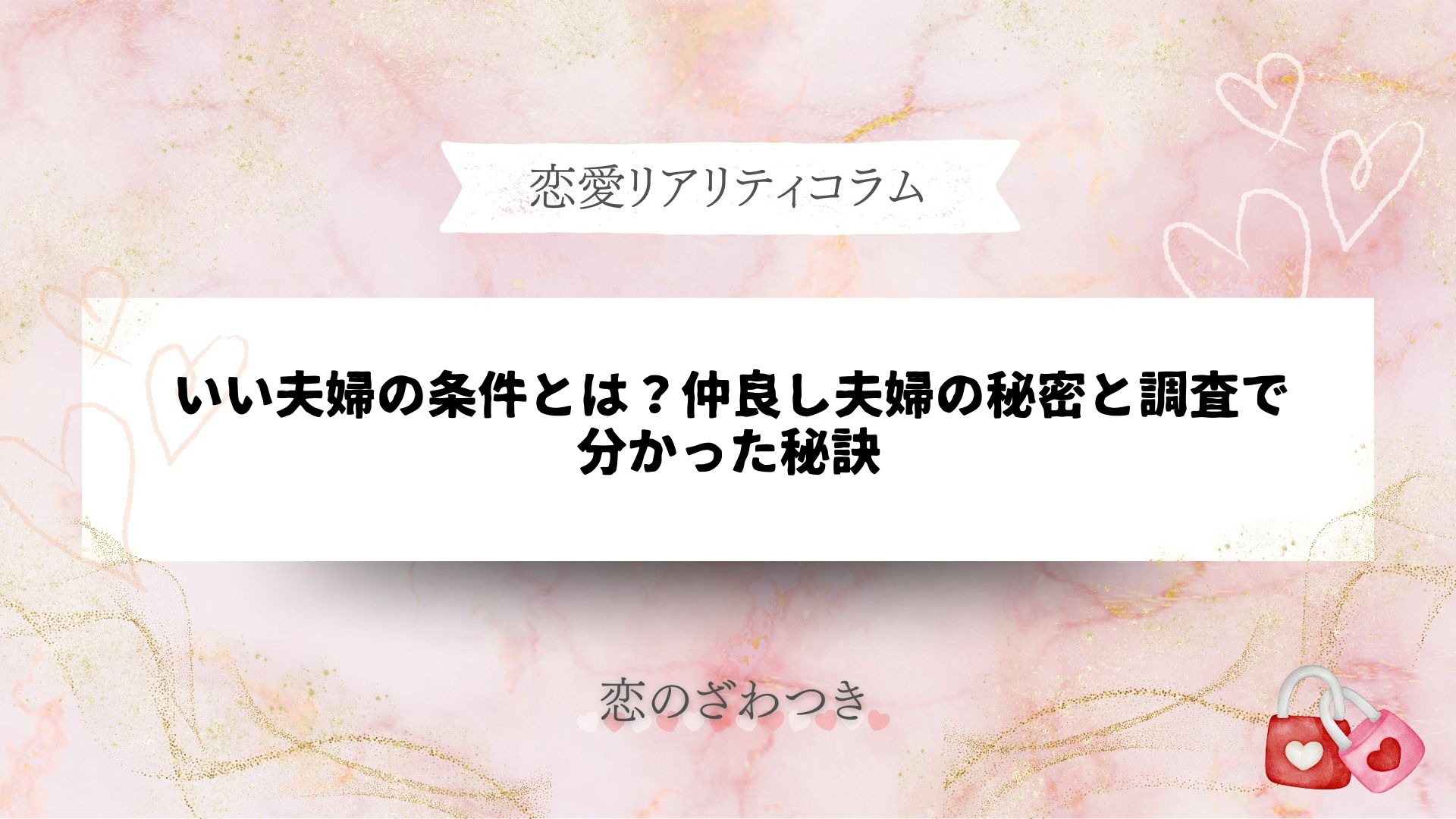 「いい夫婦とは何か?」という問いには、さまざまな答えがあるものです。実際の調査結果から見えてきたのは、いい夫婦の多くが「夢や価値観の共有」を大切にしているという事実です。また、夫婦間の歩み寄りや、家庭環境がもたらす影響についても注目されています。ここでは、調査で明らかになった「いい夫婦の秘密」を徹底解説します。