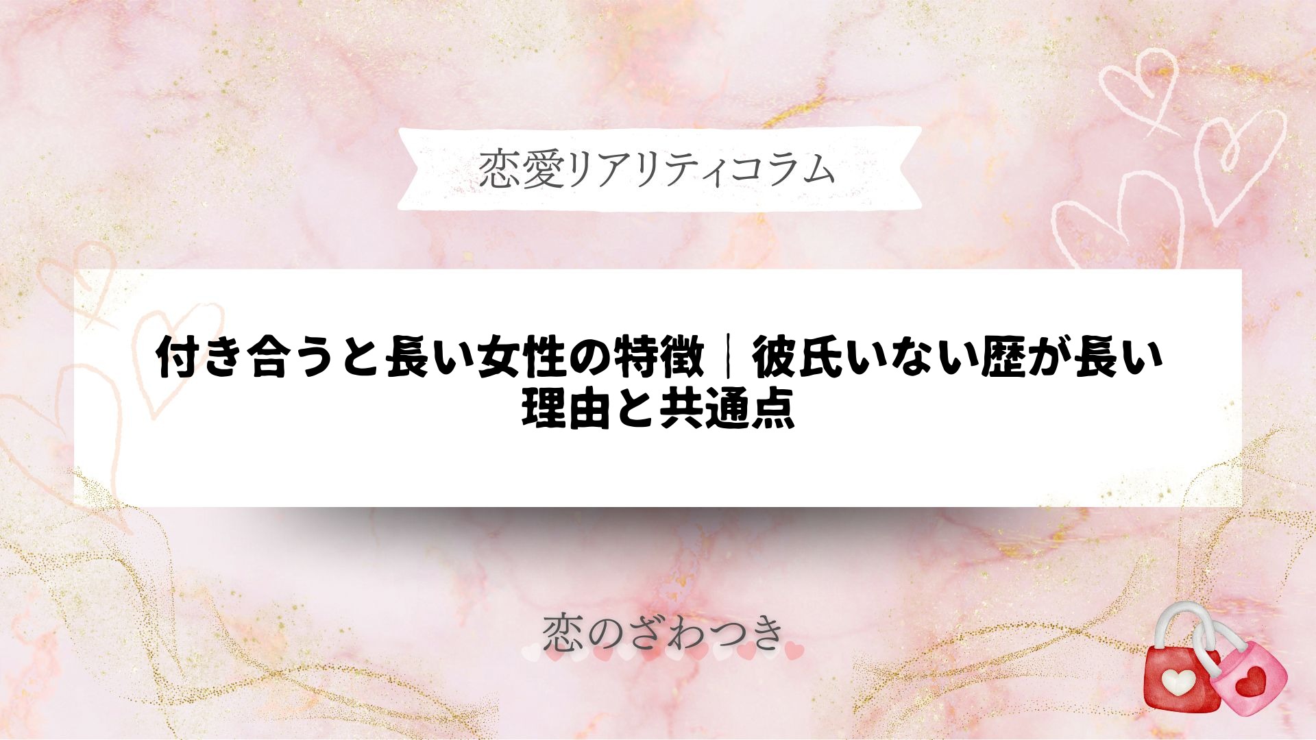 付き合うと長い女性には、恋愛に慎重で安定志向の方が多いと言われています。しかし、なかなか彼氏ができない、付き合うまでに至らないという悩みは意外と多くの女性が抱えています。ここでは、彼氏いない歴が長い女性に共通するポイントを明らかにし、「付き合うと長い女性」になる秘訣も紹介します。これから恋愛を長続きさせたい方は、ぜひ自分自身と照らし合わせてみてください。