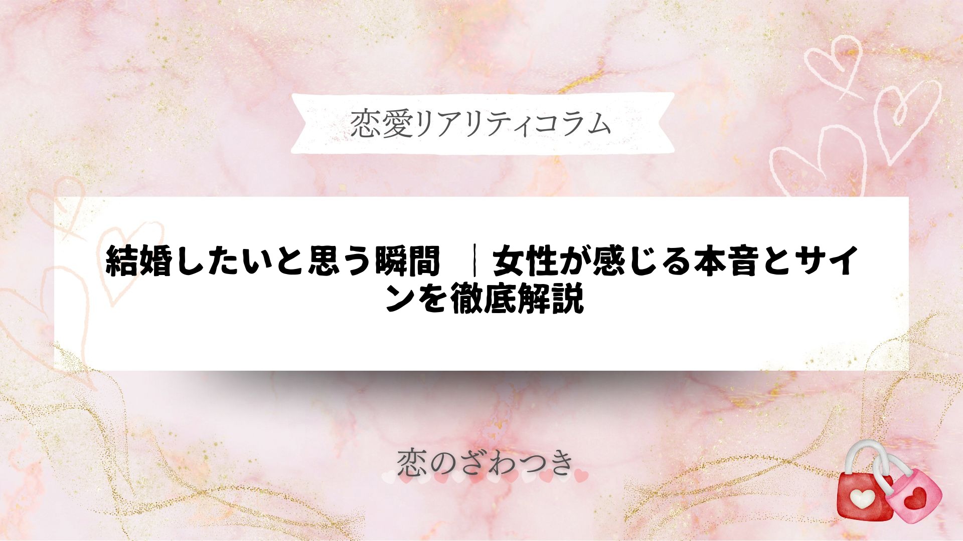 「結婚したいと思う瞬間 女性」というテーマも、男性側の視点や本音を交えて解説できる点が強みです。
