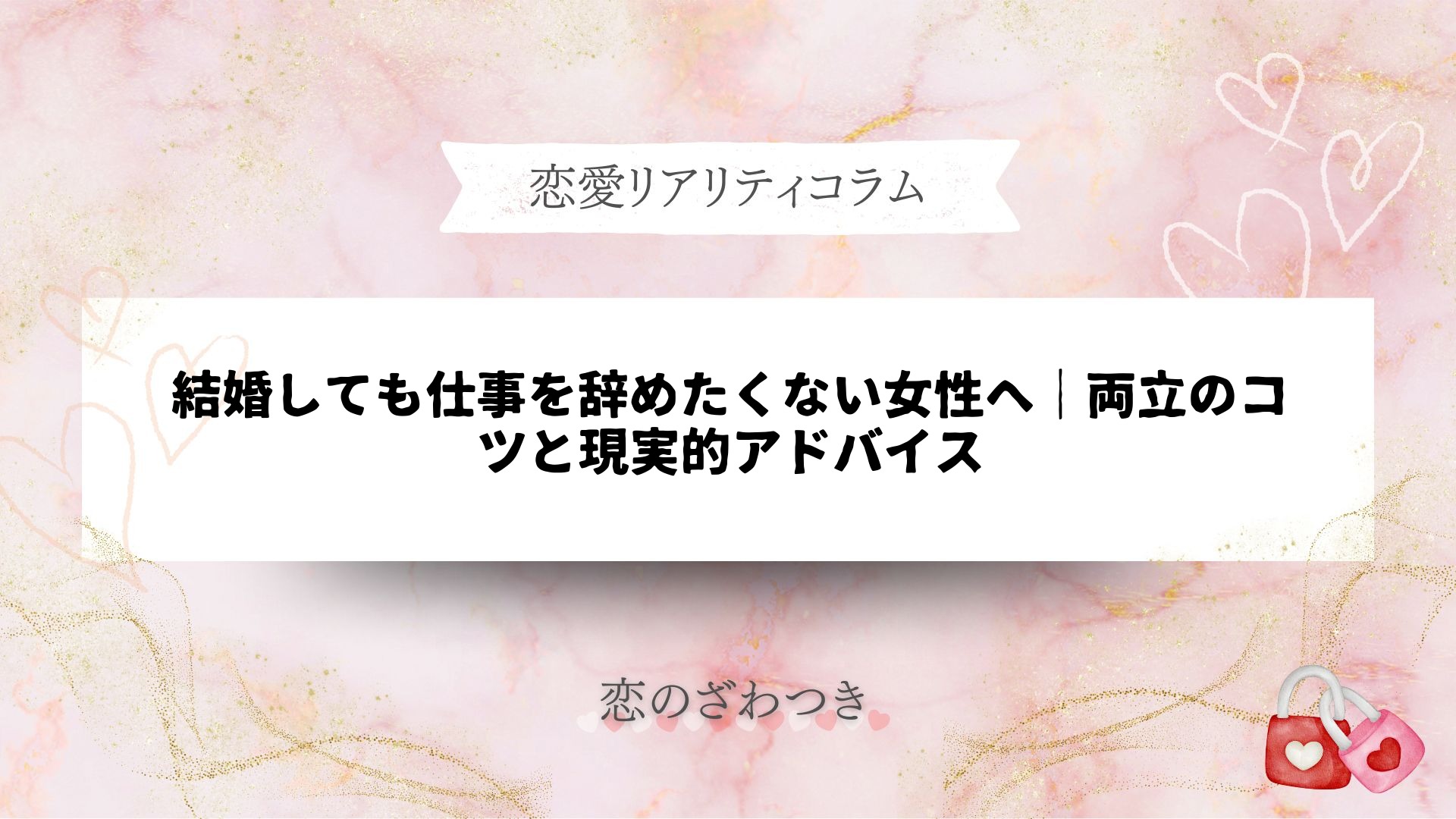 結婚を機に「仕事を辞めたくない」と思う女性が直面する現実的な課題と、その乗り越え方についてお伝えします。