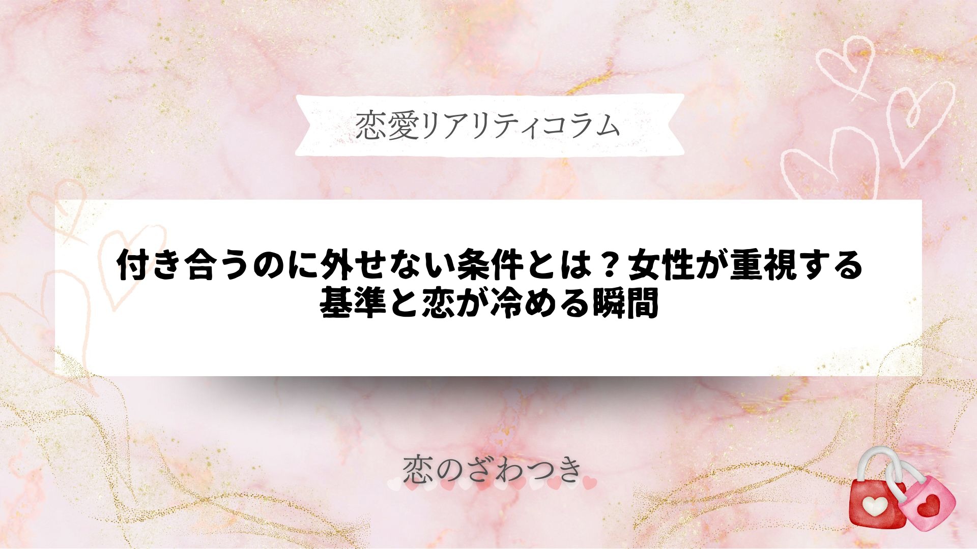 | 女性が重視する付き合うのに外せない条件 | 具体例・解説 |