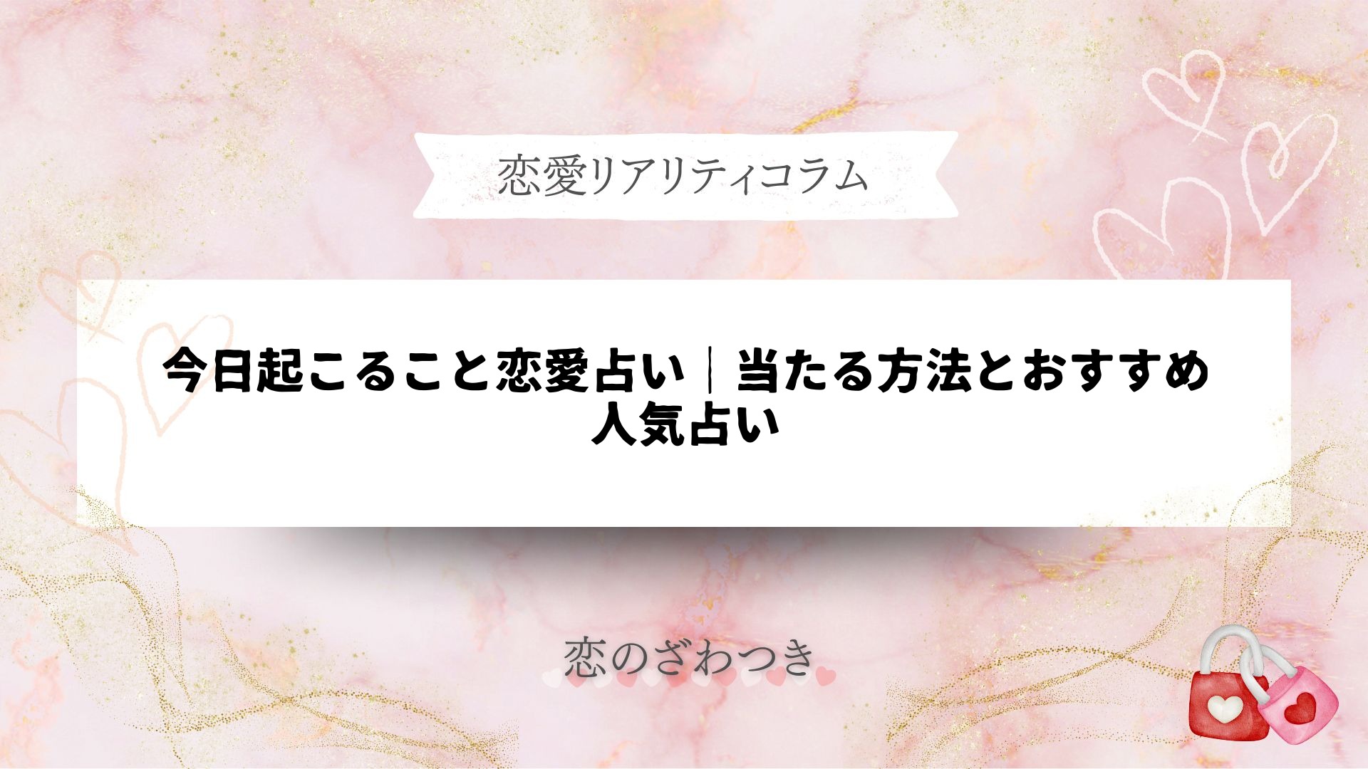 恋愛の運気や今日起こることが気になる方へ。「今日起こること」は、多くの人が毎日検索する人気のテーマです。運命の出会い、気になる人との距離感、恋のチャンスや注意点…。恋愛に関する今日の出来事を知ることで、あなたの一日がより素敵に変わります。本記事では、今日起こる恋愛の出来事を占う方法や、関連占い、目的に合わせた占いの選び方まで、実用的でわかりやすく解説します。毎日を前向きに、恋愛運を上げたい方必見です!