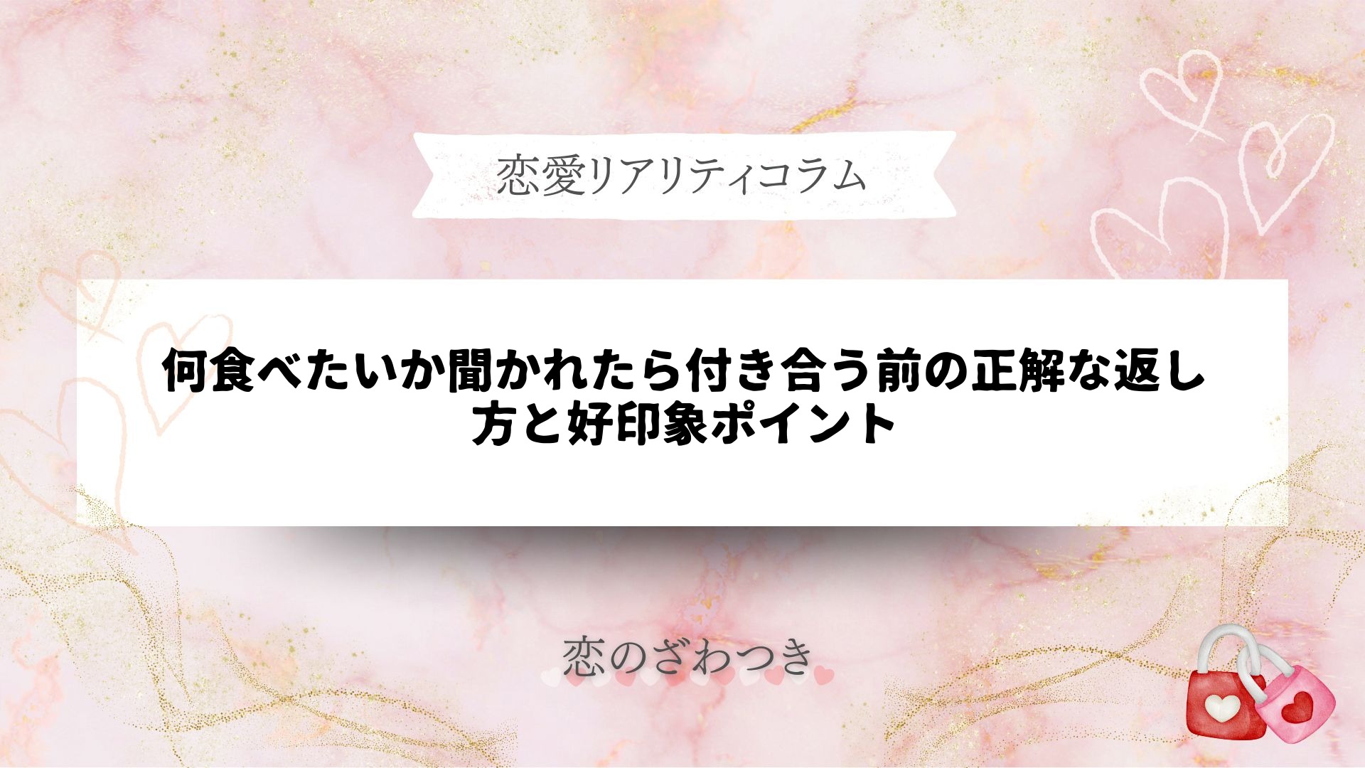 初デートや気になる相手との食事で「何食べたい?」と聞かれた時、あなたはどう答えますか? 付き合う前の微妙な距離感での会話は、今後の関係を左右する大切な一歩。 このタイミングでの受け答えは、あなたの印象や二人の距離感に大きく影響します。 本記... -