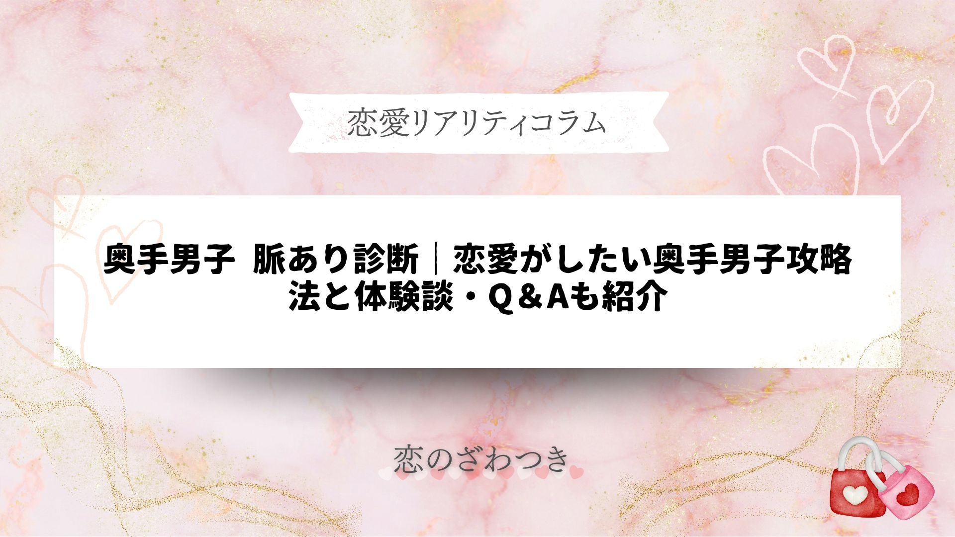 コラム奥手男子 脈あり診断|恋愛がしたい奥手男子攻略法と体験談・Q&Aも紹介