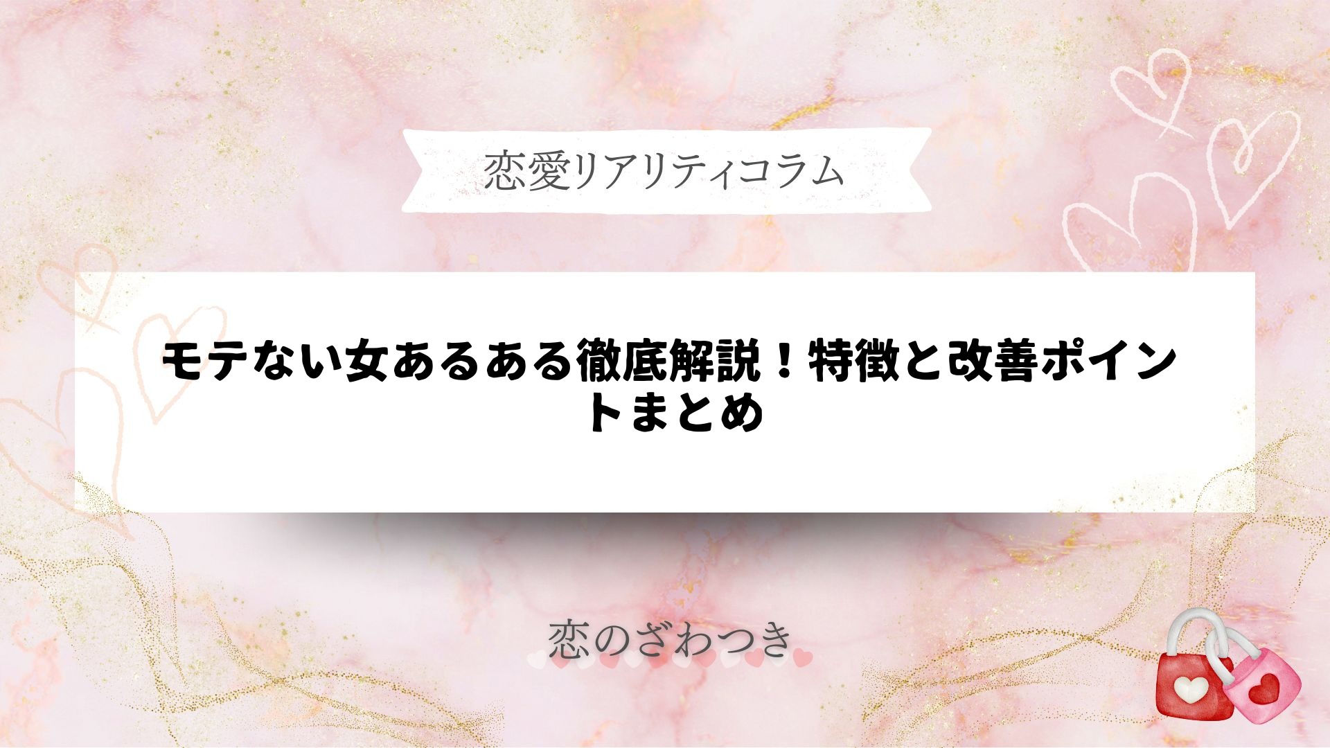 「どうして私はモテないんだろう?」と悩んだことはありませんか?実は、世の中の多くの女性が同じ悩みを抱えています。「モテない女」は、誰もが一度は感じたことのあるリアルな悩みや失敗談の集合体です。この記事では、見た目・性格・言動ごとにモテな... -