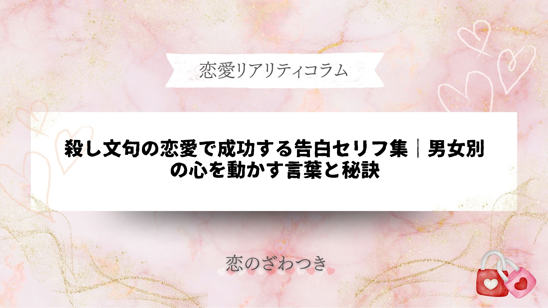 恋愛において、心を動かす「殺し文句」は、告白の瞬間や大切なタイミングで大きな力を持ちます。本記事では「殺し文句」をテーマに、男女別に効果的なフレーズや、失敗しないための極意、NG例まで余すことなく網羅。恋愛で迷ったとき、どんな言葉を選ぶべ... -