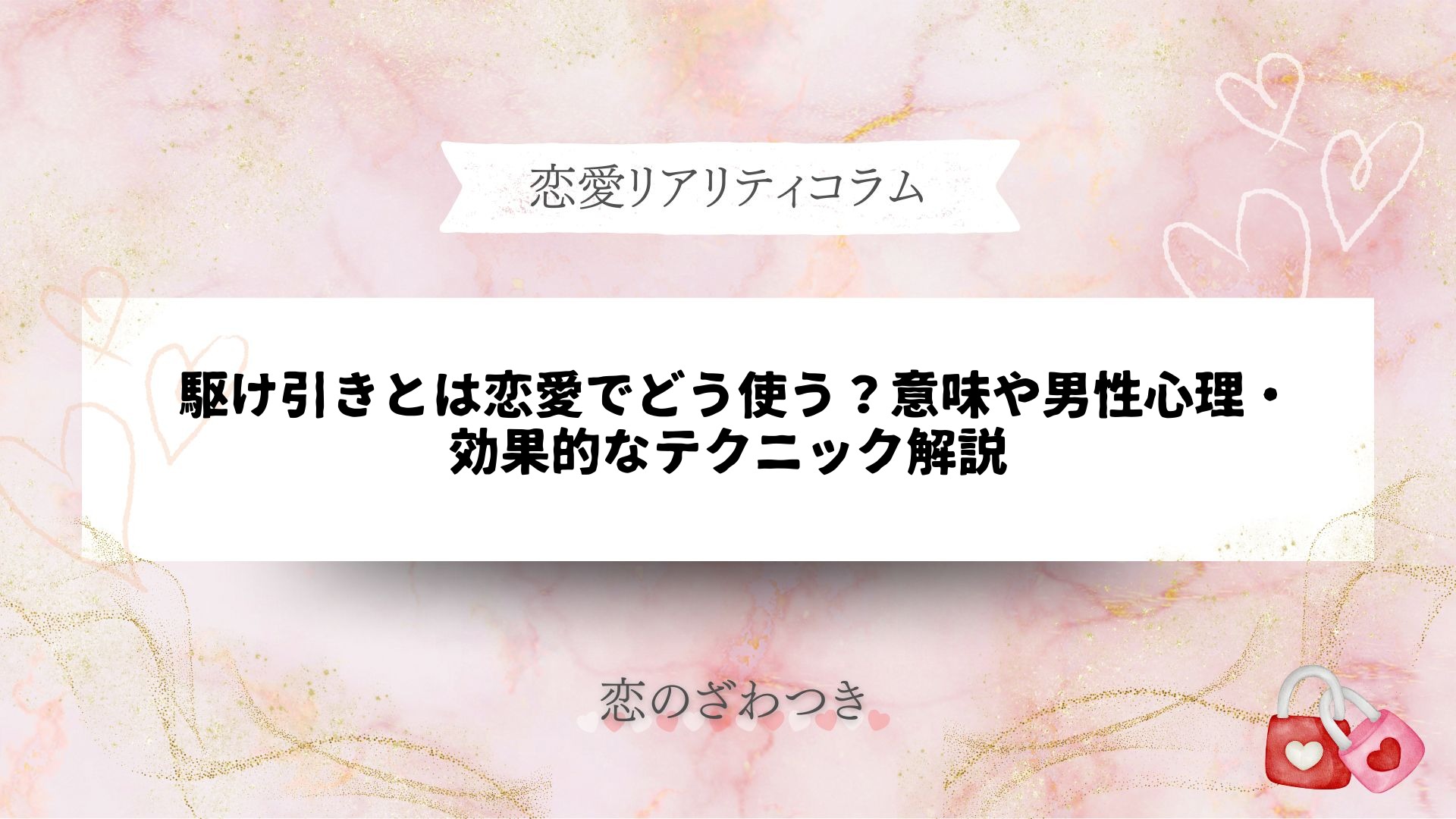 恋愛や人間関係においてよく耳にする「駆け引きとは」何か、気になったことはありませんか?駆け引きとは、単なる作戦やテクニックだけでなく、心理や相手との距離感を上手にコントロールする重要なコミュニケーション技法です。本記事では、恋愛でよく使... -