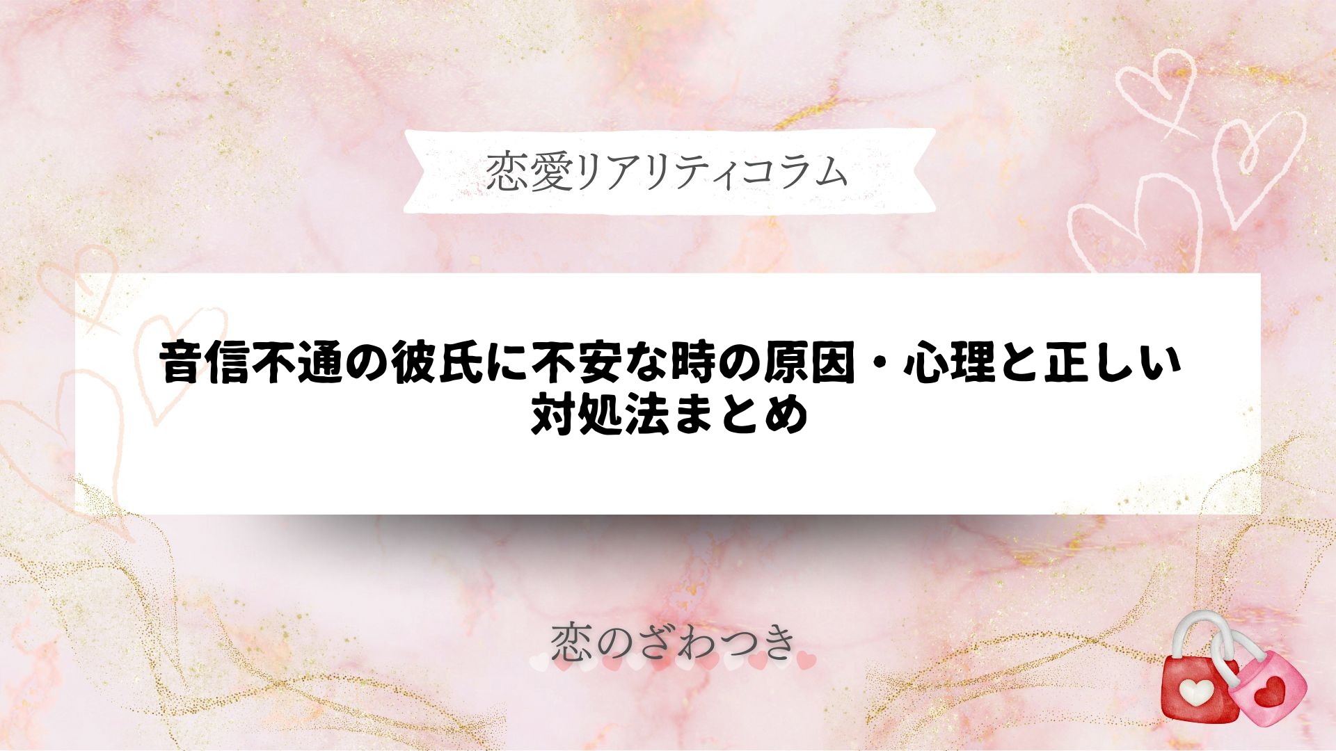 突然、彼氏との連絡が途絶えてしまうと、胸が締め付けられるような不安や焦りを感じてしまうものです。「もしかして嫌われたの?」「何かトラブルがあったの?」など、さまざまな疑問や心配が頭をよぎりますよね。本記事では、音信不通に悩む方へ向けて、... -